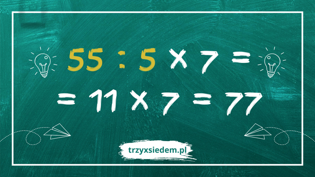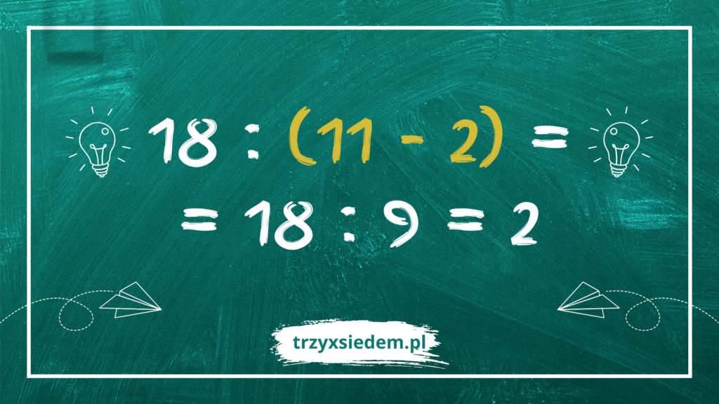 Tak samo w przypadku mnożenia i dzielenia. Jeśli występują w jednym działaniu – wykonujemy je w kolejności od lewej do prawej.